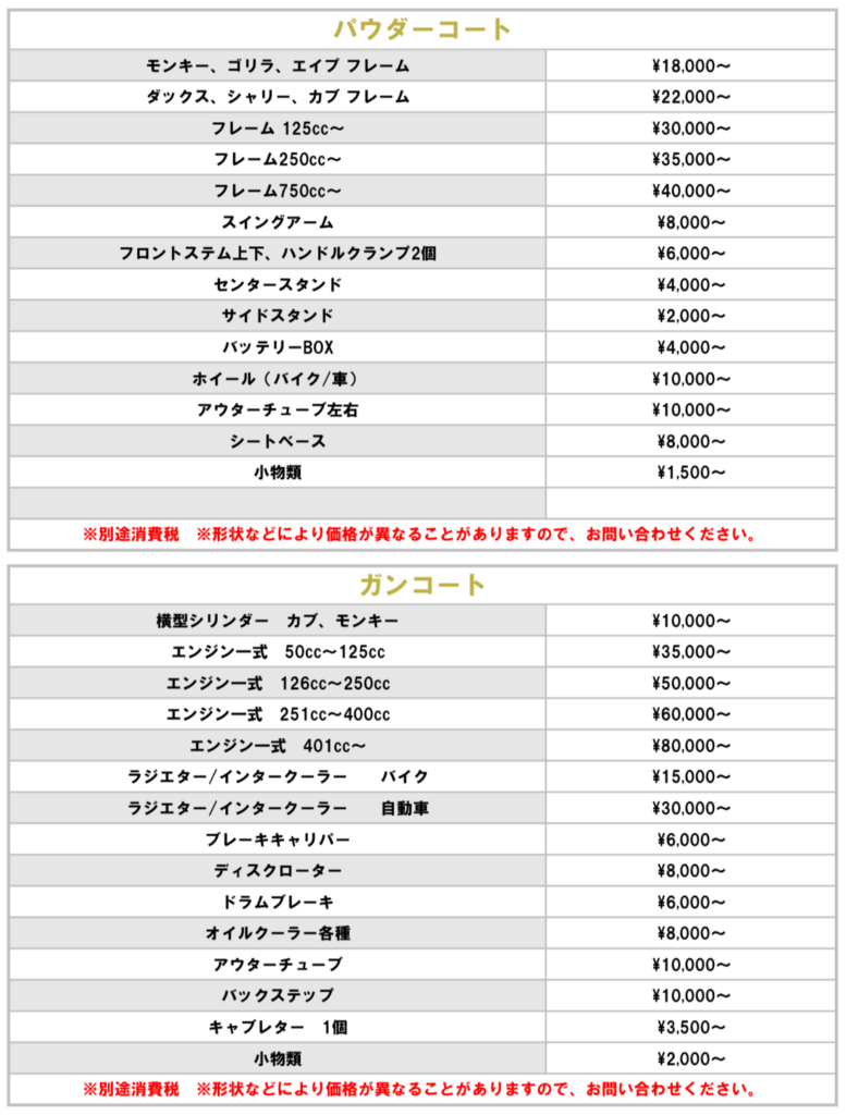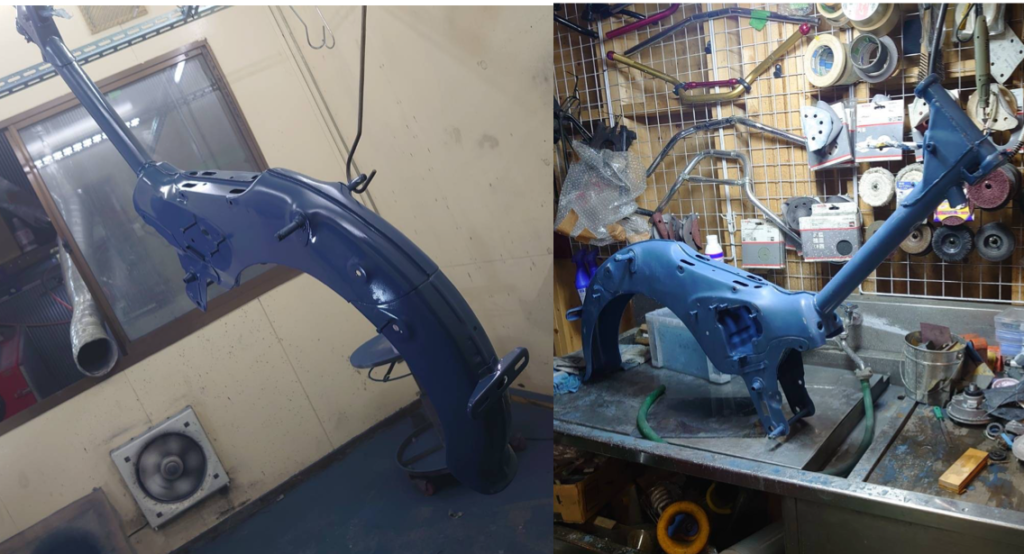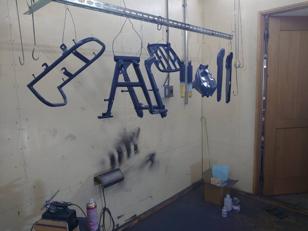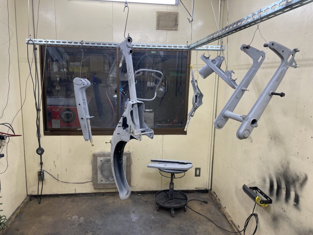 当社では外装パーツ、エンジン、フレームや骨組みパーツなどあらゆる箇所の塗装を当社の塗装ブースで施工しております。塗装も・パウダーコート・ガンコート・ウレタン塗装とパーツごとに使い分け純正カラーやオリジナルのカスタムカラーに対応しています。