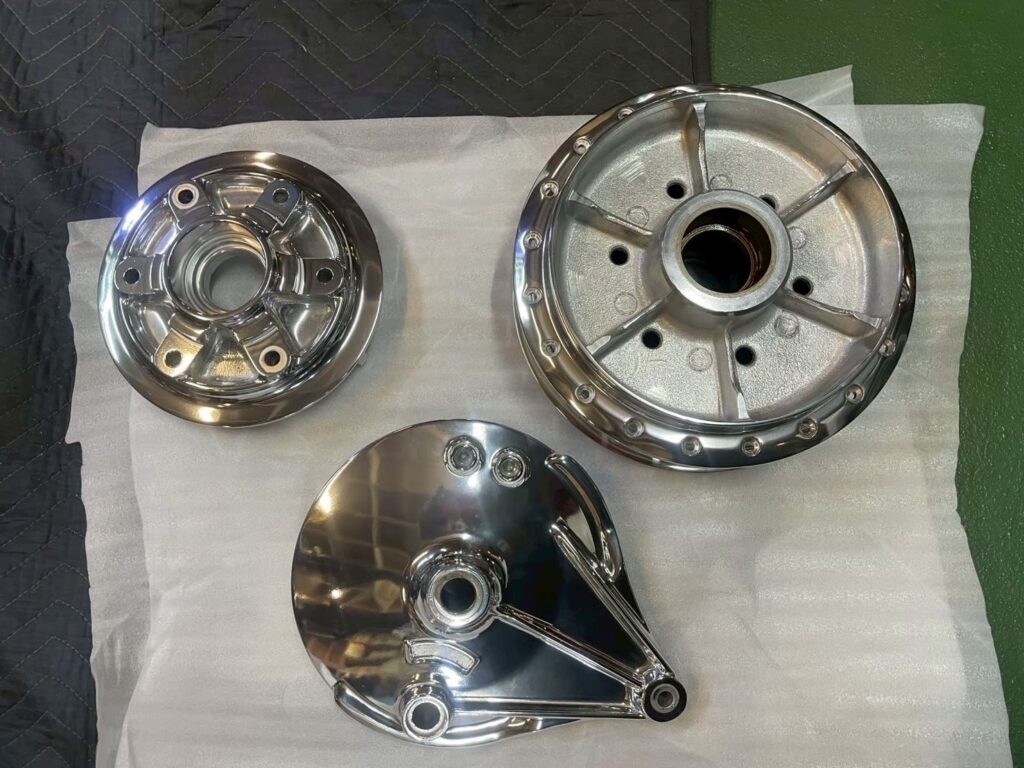 通常のバレル研磨は、ドラム(容器)を回転させて、ワーク(加工物)+研磨石(メディア)+コンパウンドを混ぜて研磨します。3Dバレル研磨はそれに加えて、容器が・回転・揺動・傾斜など3次元な複合運動をするため、部品が立体的に流動します。仕上がりは新品に近い質感になります。当社でもお客様からの依頼が増えてます。【作業車種 : 750SS MACH H2C】