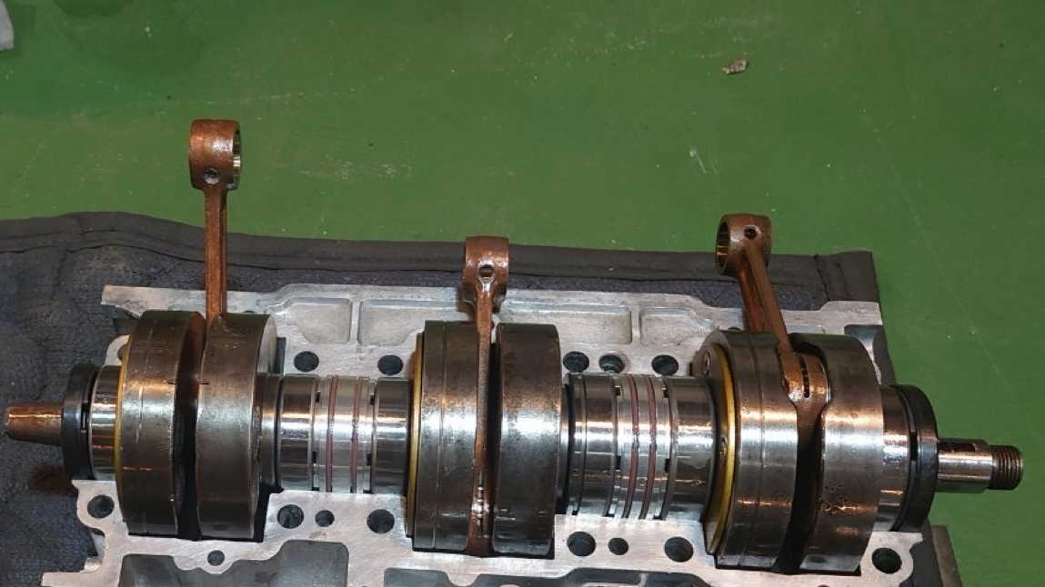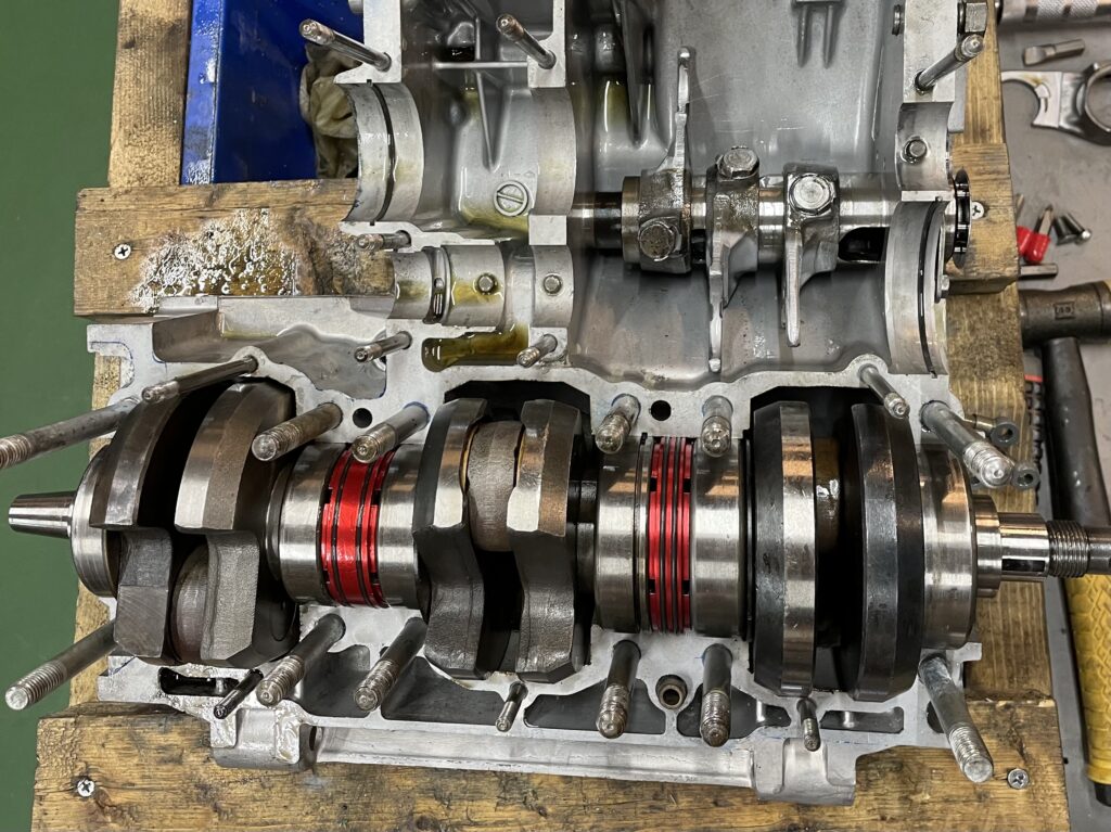 クランク分解・コンロッド点検・クランクベアリング交換、芯出し・オイルシール交換(希望によりラビリンスシールに交換) ※2ストはクランクランクシール劣化=エンジン不調の原因になります。【作業車種:500SS MACH H1】