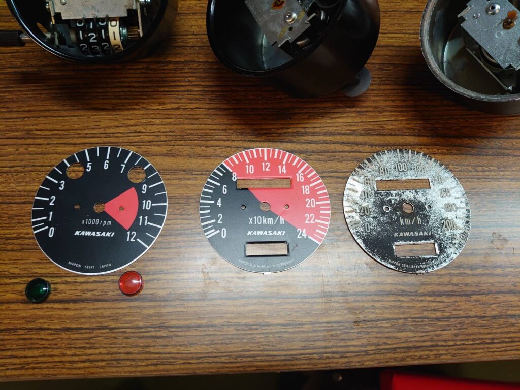 旧車バイクでは、スピードメーターやタコメーターが動かない・針が振れる・異音が出るなどのトラブルがよくあります。メーター内部のギアの摩耗により針が不安定だったりカタカタ音が出たり、磁石(マグネット)不良により速度表示が大きくズレたり、メーターの針が戻らない、動きが重いなど当社では、メーターの分解からオーバーホールまで対応させて頂いてます。